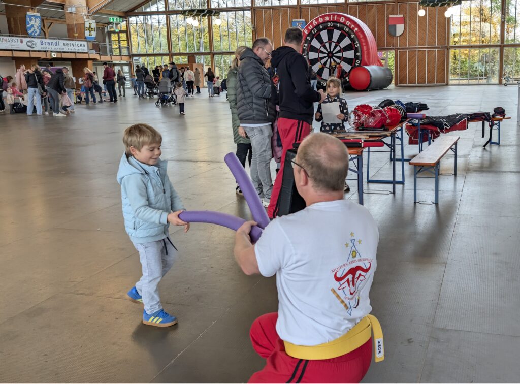 Am Nachmittag fand ein Kinder- und Elternprogramm statt, bei dem wir Modern Arnis vorgestellt haben. Unser Mitmachstand fand großen Anklang: viele Interessierte stellten Fragen zur philippinischen Kampfkunst und nutzten die Gelegenheit, erste Bewegungen auszuprobieren.